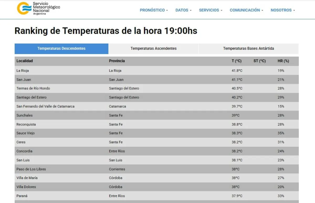 En esa línea, la provincia cuyana superó a Termas de Río Hondo y a la capital de Santiago del Estero (con 40.5° y 40.2° respectivamente); y a la capital catamarqueña, con 39.7° a las 19 horas.