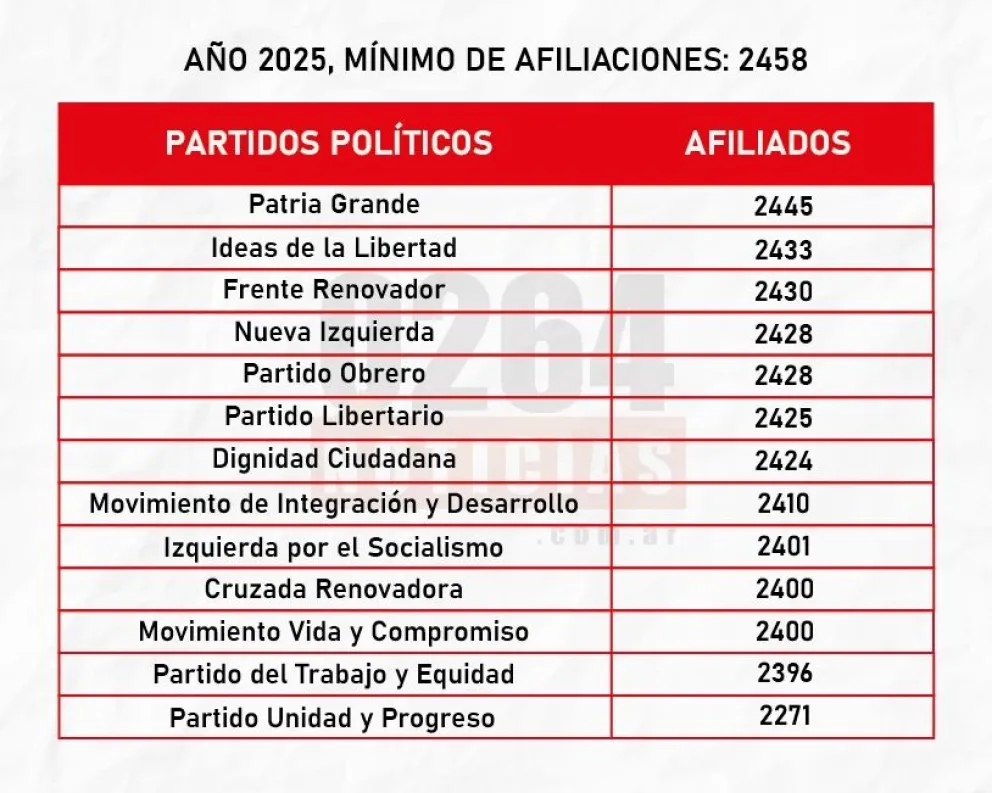 Unidad y Progreso, Cruzada Renovadora, Dignidad Ciudadana, el Frente Renovador, el Partido Libertario, Nueva Izquierda, el Partido Obrero, el Movimiento de Integración y Desarrollo (MID) y el Partido del Trabajo y la Equidad (Parte) ya habían atravesado por la misma situación 2024, pero lograron pasar el requisito exigido.