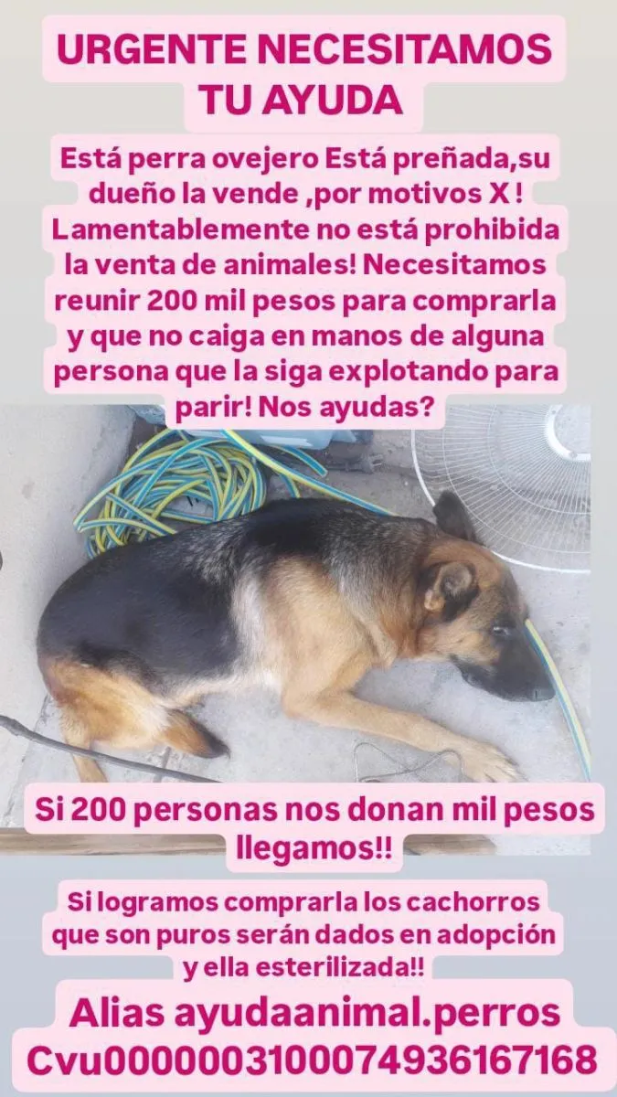 Indignante: ofrecen por 200 mil pesos una perra ovejero alemán preñada y una organización proteccionista armó una colecta para comprarla