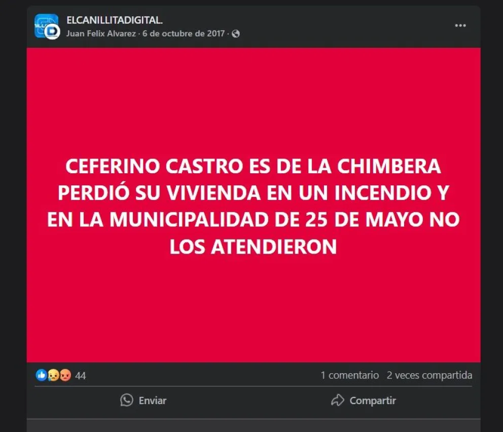 Un periodista caucetero, Ariel Rodríguez, contó en su cuenta de Facebook, algunos detalles sobre quién era Ceferino. El anciano era oriundo del departamento y durante muchos años vivió en la localidad de La Chimbera. Sin embargo, en publicaciones de medios departamentales, dan cuenta que en octubre de 2017, es decir, hace 8 años, la vivienda de Ceferino sufrió un grave incendio que lo dejó prácticamente en la calle, perdiendo todo en el siniestro.