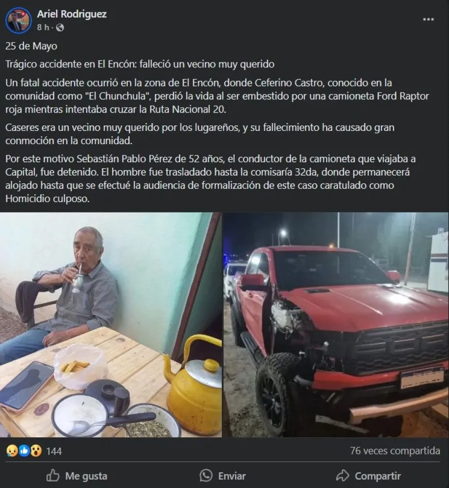 Él era Ceferino, el jubilado que murió atropellado en El Encón y que hace unos años sufrió otra tragedia