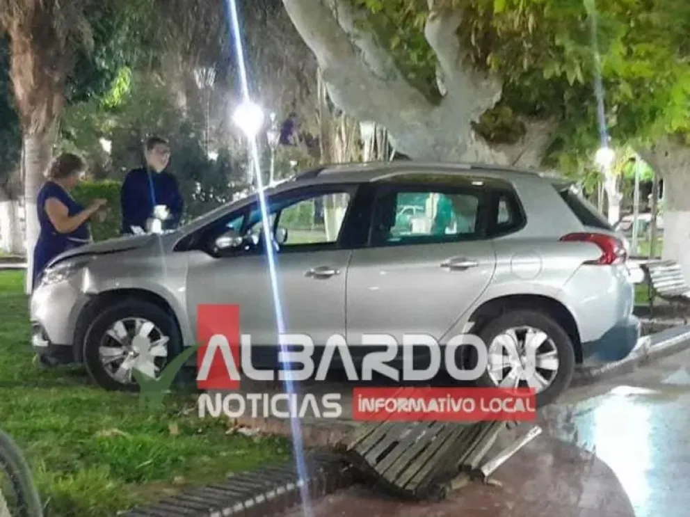 El vehículo se incrustó en el espacio verde frente a la intendencia en plena noche del viernes. El impacto destruyó un banco, pero milagrosamente no hubo heridos.