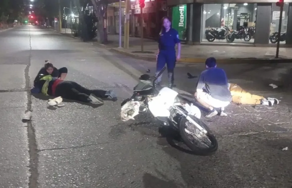 El hecho fue presenciado por efectivos policiales de la Comisaría 3°, quienes se encontraban en el lugar esperando la luz verde para continuar su recorrido por Avenida Rawson. Debido al impacto, tanto el motociclista como su acompañante sufrieron lesiones y fueron trasladados de urgencia al Hospital Rawson.