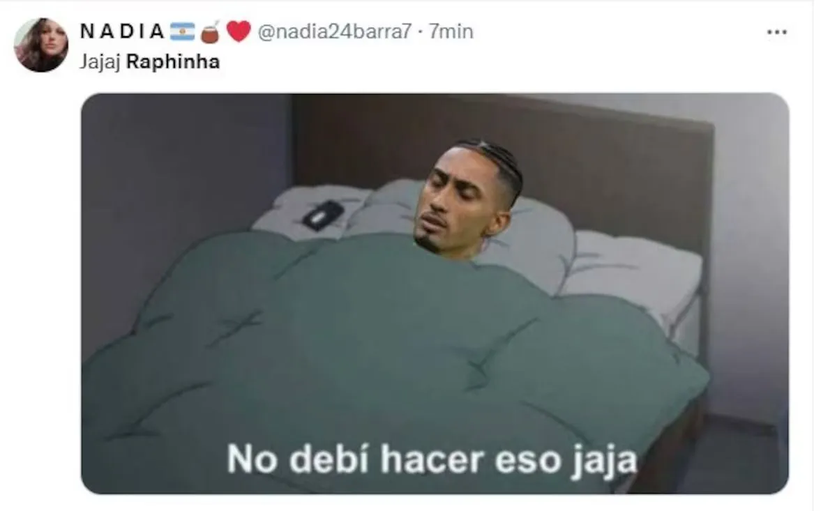 Los usuarios de las redes sociales estallaron con los clásicos memes. Las burlas al elenco brasileño, en especial a Raphinha, quien había emitido fuertes declaraciones en la previa, fueron los ejes elegidos por los fanáticos de la Scaloneta, que volvió a mostrar un repertorio futbolístico enorme.