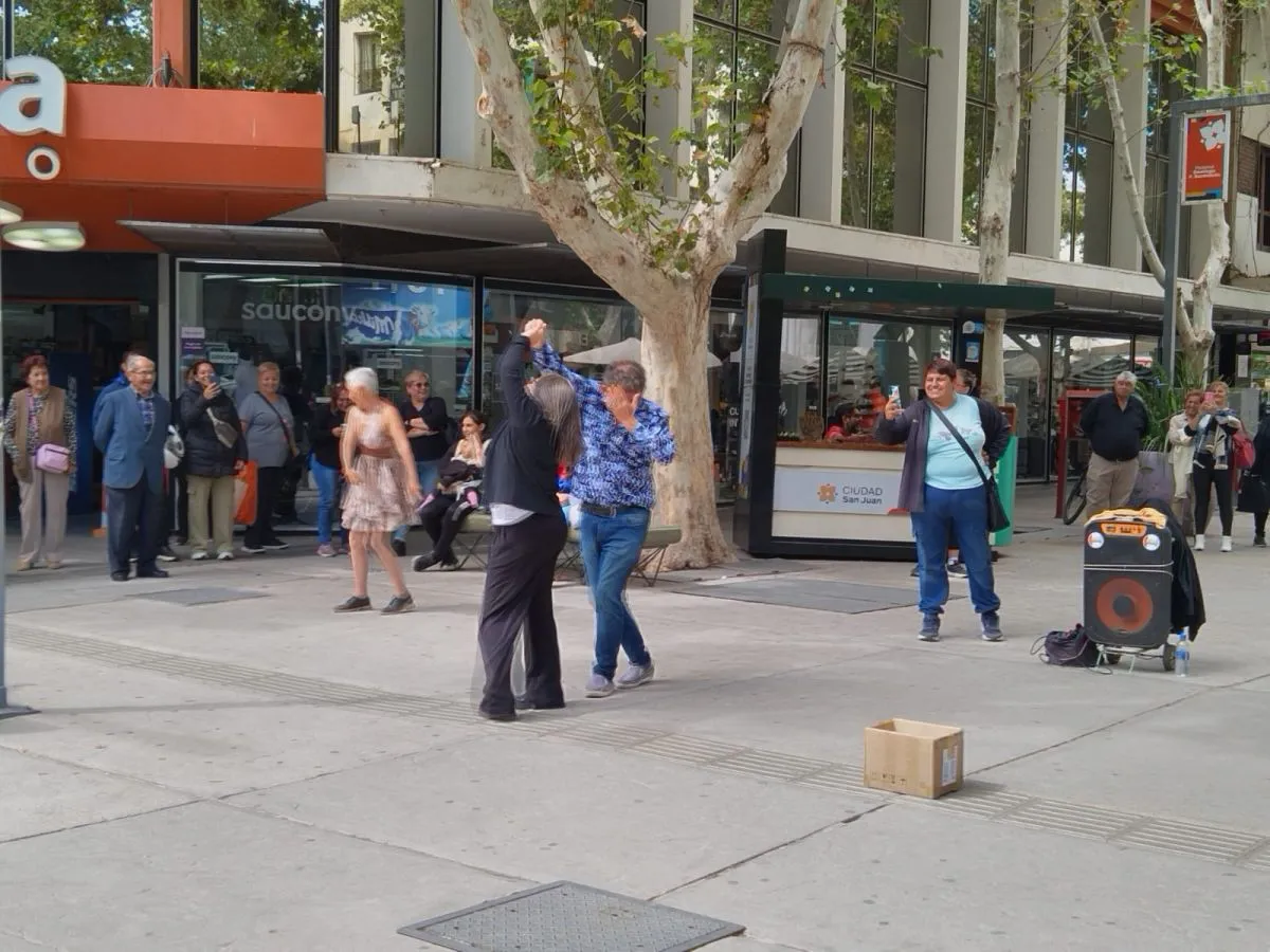 En los últimos días, los sanjuaninos que caminaron por la peatonal se encontraron con una grata sorpresa: la pareja cordobesa de Jorge y Marcela bailando cuarteto en el cruce del paseo céntrico. Al terminar su presentación, la gente se detiene y aprovecha la oportunidad para sacarse fotos con ellos, llevándose el cariño que consiguieron por su exposición en las calles del país. “Sentimos mucha alegría. Lo mejor que nos pasó acá es que nos sentimos en casa. Estamos agradecidos de todo lo que nos pasa en esta linda vida”, expresó Marcela a 0264 Noticias.