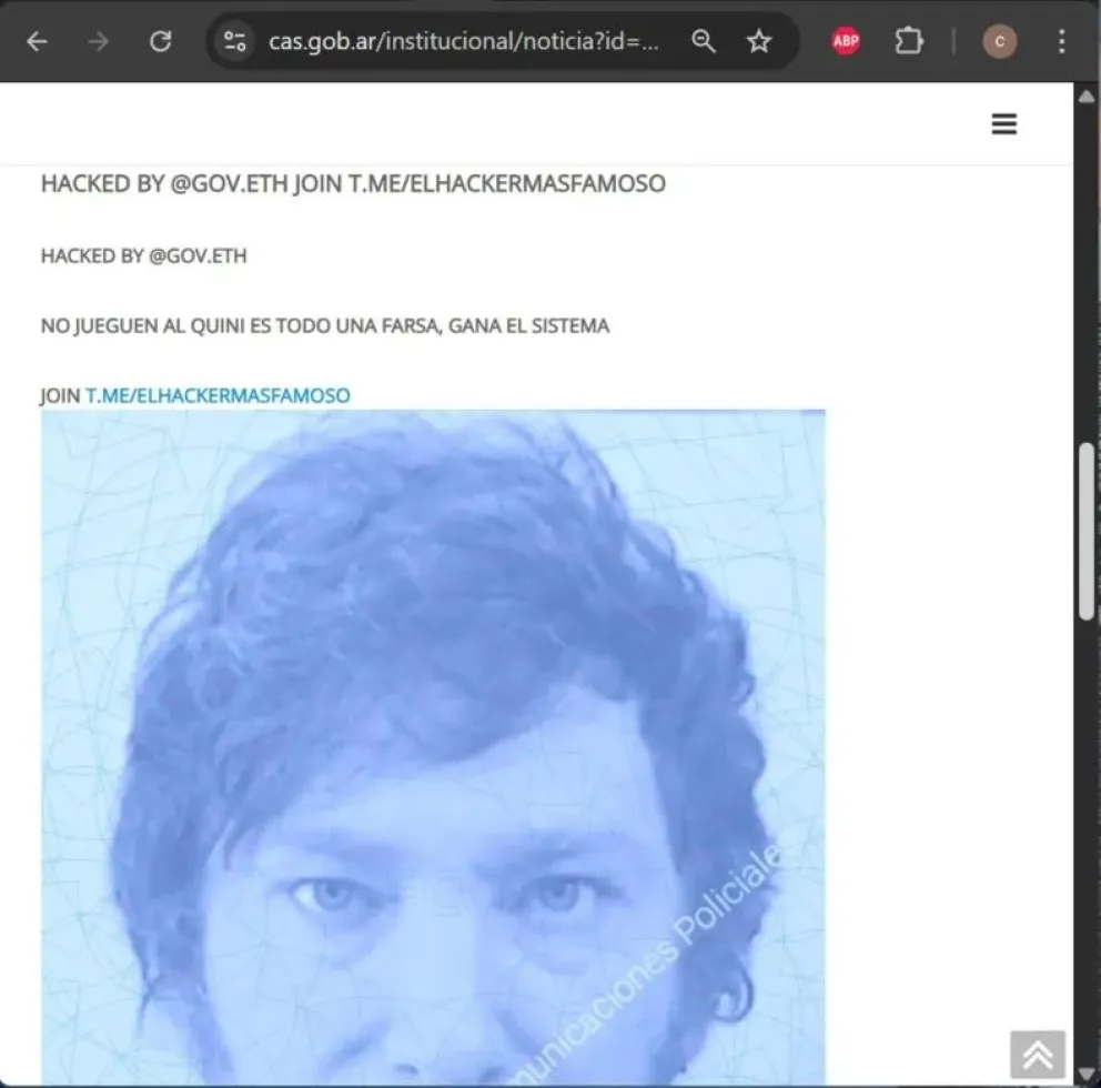 Un hecho insólito sorprendió a miles de usuarios que ingresaron este fin de semana al sitio oficial de la Caja de Acción Social de San Juan. La sección de “Noticias institucionales” fue hackeada y, en lugar de su contenido habitual, apareció una imagen desprolija del presidente Javier Milei junto a una frase sarcástica: “No jueguen al Quini, es todo una farsa, gana el sistema”.