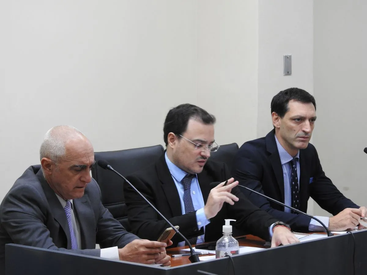De izquierda a derecha: Jorge Videla (abogado defensor), Ignacio Dominguez, ayudante fiscal, y Nicolas Schiattino, fiscal