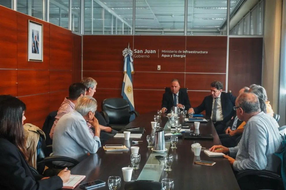 Del encuentro participaron el ministro de Producción, Trabajo e Innovación, Gustavo Fernández, y el ministro de Infraestructura, Agua y Energía, Fernando Perea, junto a integrantes del Consejo de Regantes del Departamento de Hidráulica y varios presidentes de las Juntas de Riego.