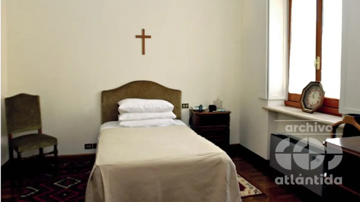 En lugar del Palacio Apostólico, con sus salones dorados, Francisco optó por un cuarto sencillo, sin más que una cama individual, un crucifijo, una lámpara de lectura y su mate argentino.