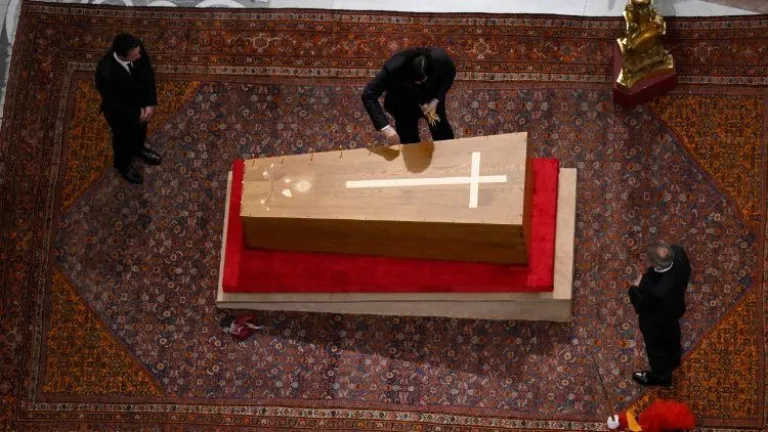 Según se ha podido ver en las imágenes distribuidas del interior de la basílica vaticana, pocos minutos antes de las 19:00 hora local, los fieles dejaron de desfilar ante el ataúd de Francisco y se quedaron únicamente religiosos y personal del Vaticano en el interior de San Pedro.