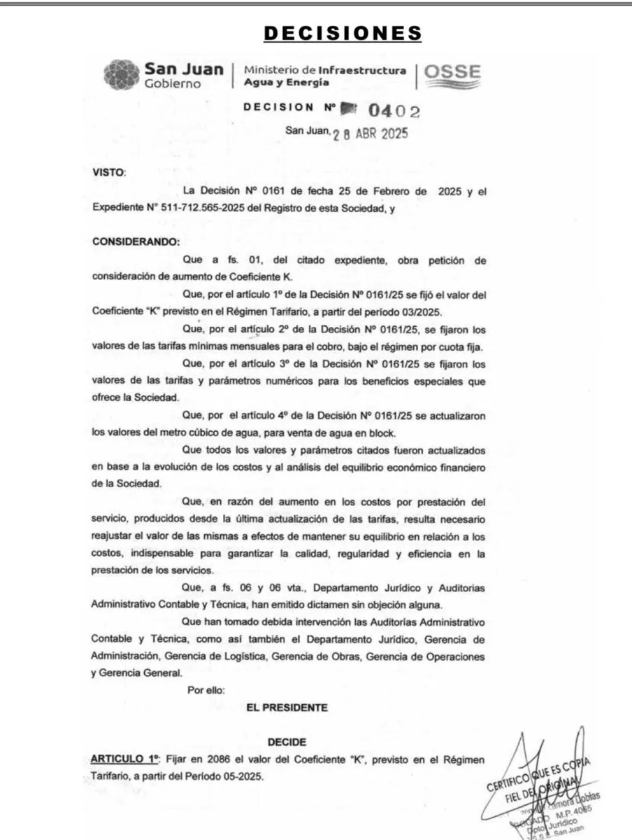 La empresa Obras Sanitarias de Saneamiento de la Salud (OSSE) ha anunciado un aumento en las facturas de agua y estos nuevos incrementos comenzaron a regir desde el 1 de mayo del 2025.