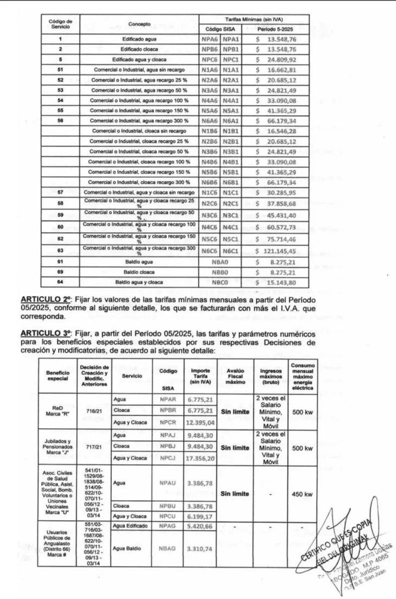 Sin IVA incluido, quienes cuenten con ambos servicios pagarán alrededor de $24.809,92, mientras que aquellos que abonen solo agua o cloacas verán un costo cercano a $13.548,76.