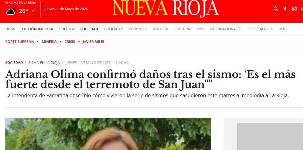 En medios locales de la vecina provincia, la intendenta de Famatina, Adriana Olima, describió el impacto emocional del sismo en la comunidad: “Fue terrible, parecía que se te caía la casa encima”, relató. Aseguró que el movimiento más fuerte generó derrumbes en cerros cercanos y dejó una sensación de inseguridad constante. En Campanas, al norte del departamento, se cayeron viviendas de adobe deshabitadas y se detectaron daños en iglesias centenarias con más de un siglo de historia.