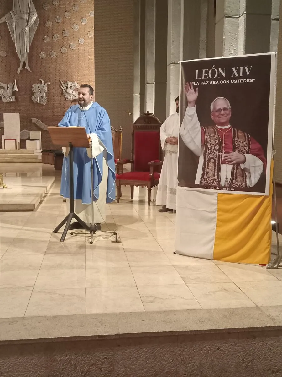 En el día que se conoció al sucesor de Francisco, en la sede central de la Iglesia en San Juan se realiza una ceremonia religiosa.