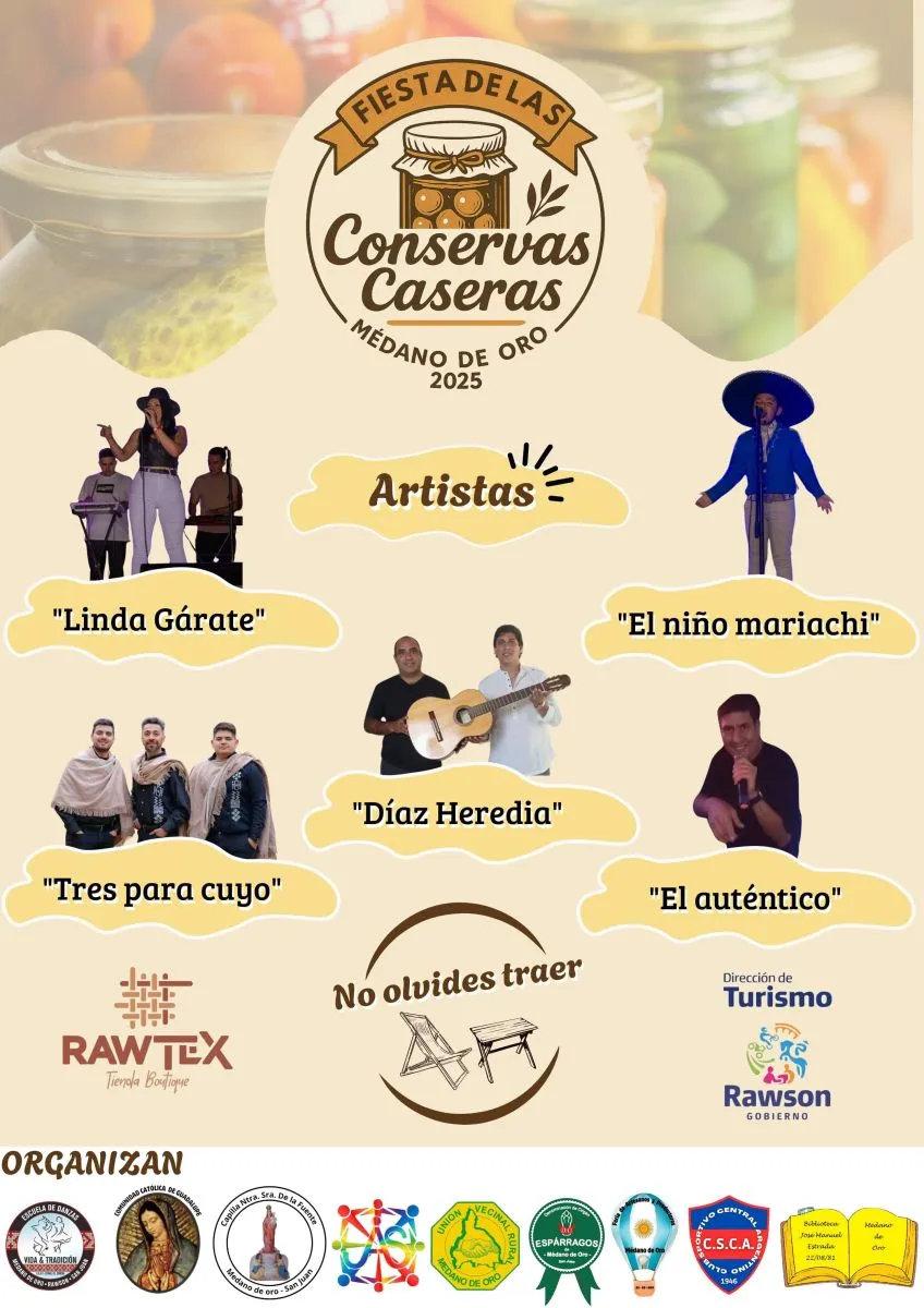 Este domingo se viene una celebración en Médano de Oro en Rawson, que propone una jornada a puro color, música y por sobre todo, sabor. Se trata de la Fiesta de las Conservas Caseras, la cual se realizará en la plaza de esa localidad rawsina.