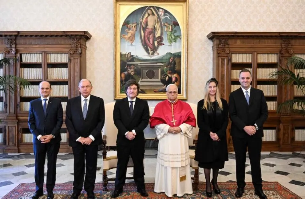 La audiencia entre el Presidente y el Papa se extendió por más de 45 minutos, la más extensa que mantuvo el Pontífice con los 12 mandatarios que recibió hasta ahora. Mientras promediaba el coloquio entre ambos, ingresó la secretaria general de la Presidencia, Karina Milei.
