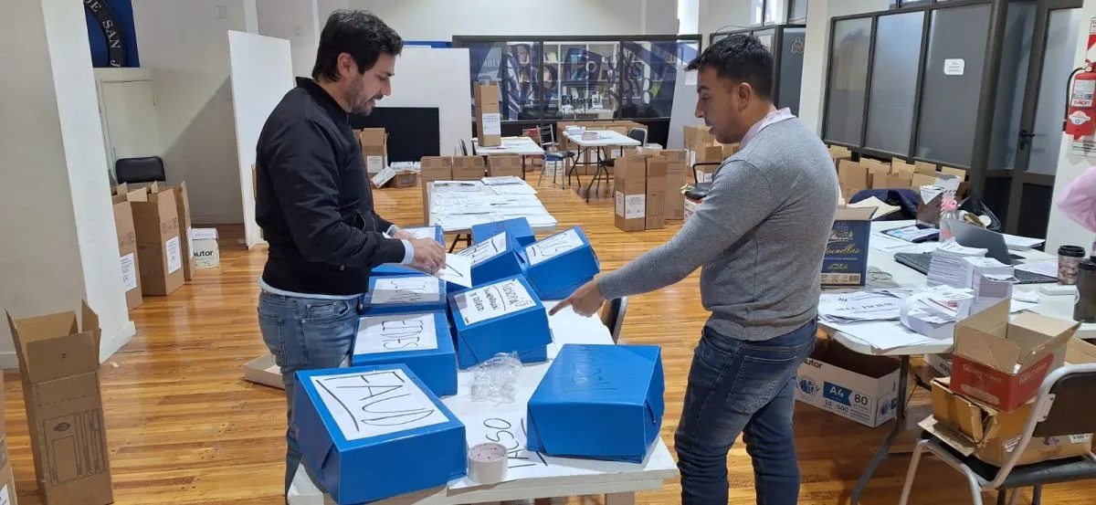 Tareas. Los miembros de la Junta Electoral apuraban los trámites para tener las urnas listas para su distribución.