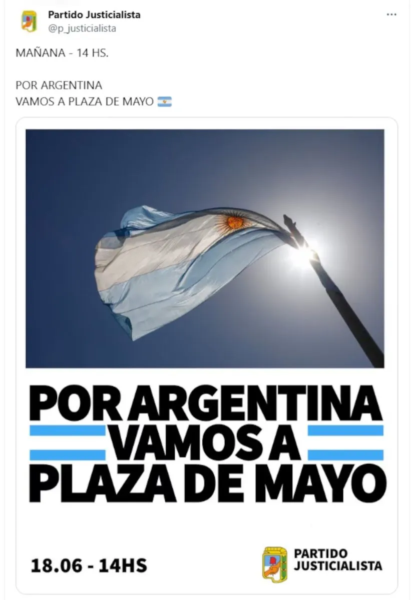 En este contexto, la Casa Rosada confirmó que les descontará el día a los empleados públicos que hagan paro para sumarse a la marcha. La mayor concentración de personas y tensión se espera a partir de las 14, horario en el que el PJ convocó a todos los militantes.