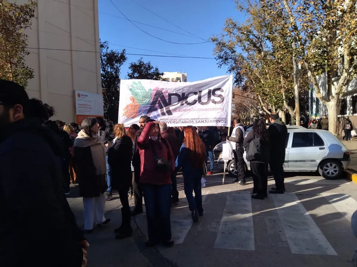 Este jueves hubo una nueva convocatoria desde la Universidad Nacional de San Juan bajo el lema "San Juan apoya la universidad pública", con una serie de actividades que comenzó con una conferencia de prensa en el rectorado, con el rector Tadeo Berenguer y Jaime Barcelona, secretario general del gremio de docentes universitarios ADICUS.
