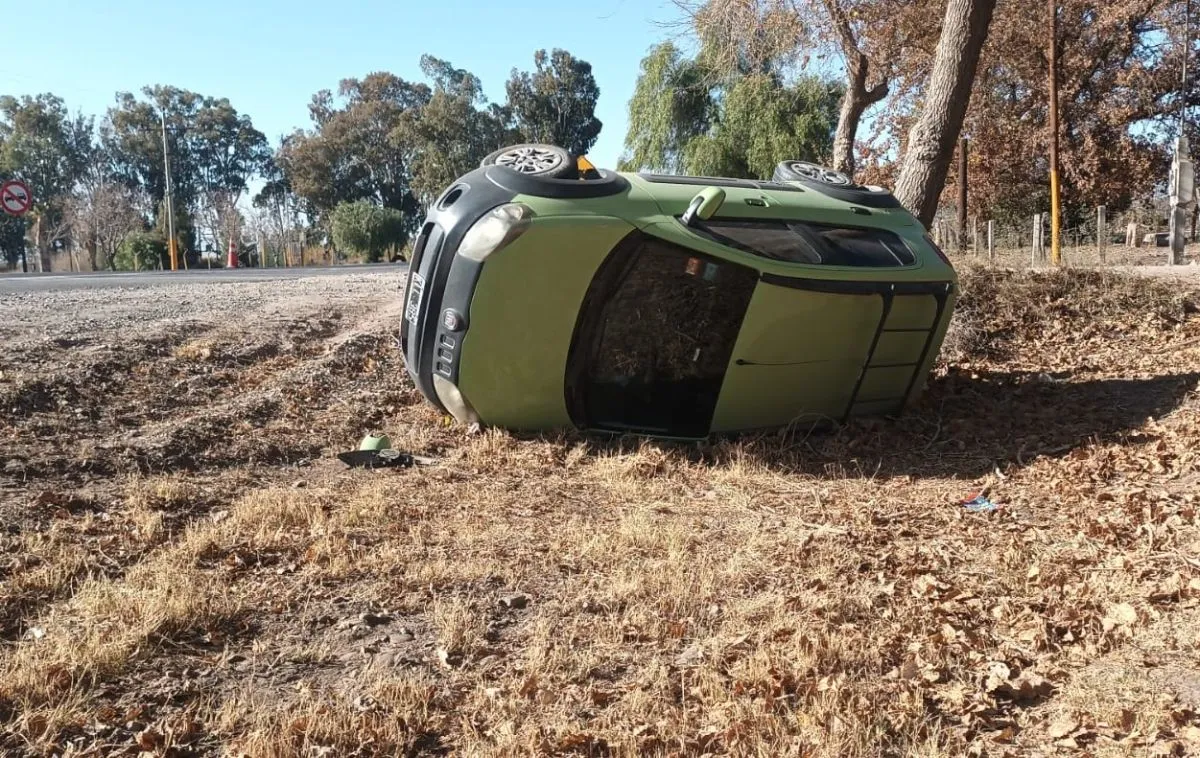 Un auto terminó dado vuelta en la banquina sur de la Ruta 20, en las inmediaciones del cementerio de Las Chacritas, en 9 de Julio, este jueves cerca del mediodía. El incidente tomó por sorpresa a los vecinos, quienes no habían notado maniobras peligrosas previas al hecho.