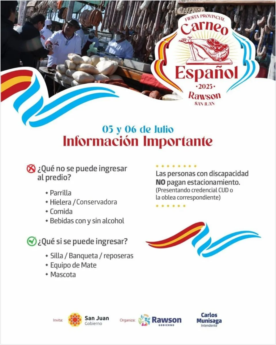 La Fiesta Provincial del Carneo Español se llevará a cabo este sábado 5 y domingo 6 de julio en el Predio Gaucho José Dolores, de 10:00 a 18:00 horas.