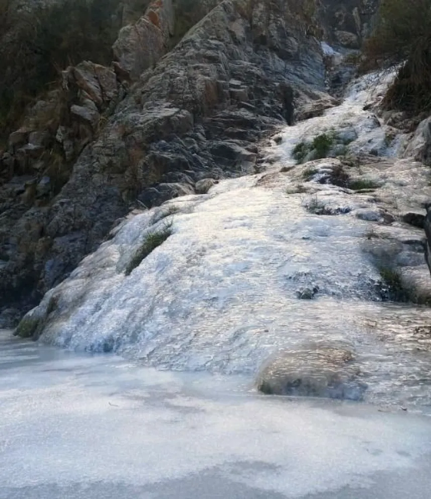 En las redes sociales, el municipio de Valle Fértil compartió unas insólitas imágenes de una cascada totalmente congelada por las bajas temperaturas registradas  durante esta semana.