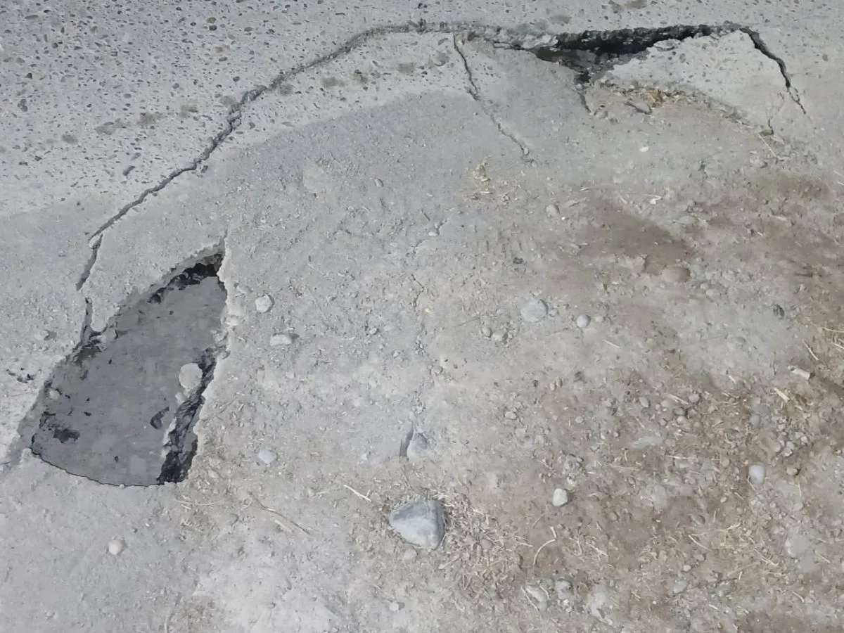 Expresaron que un hombre se cayó de una bicicleta por el deterioro de la calle causado por la pérdida de agua. Piden una solución urgente.