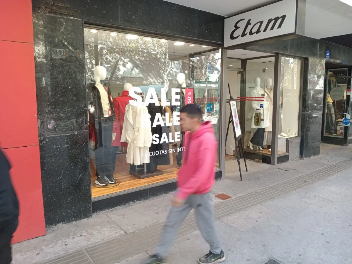 En el centro numerosos comercios exhiben carteles promocionando liquidaciones.