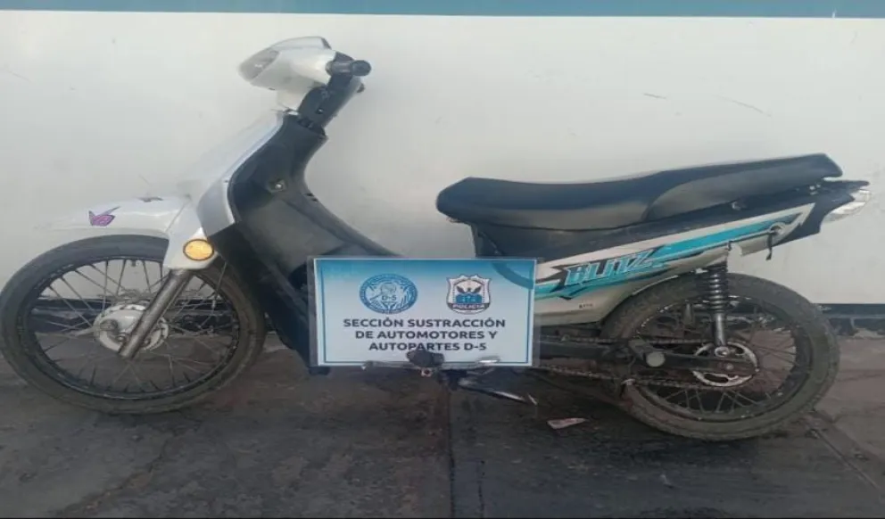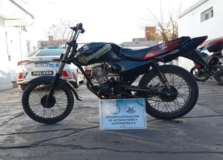 Ese mismo día, efectivos de la misma división, entrevistaron a un hombre en calle Jáchal y Castaño, en Rawson, el cual tenía en su poder una moto marca Motomel B110cc, color blanca, la cual no tenía chapa patente, estacionada en la calle. Al consultar su procedencia, confirmaron que había sido denunciada como robada el 4 de julio de 2024, es decir, el año pasado y cuyo pedido de secuestro fue emitido por la UFI Delitos Contra la Propiedad. Quedó a disposición de esa unidad fiscal.