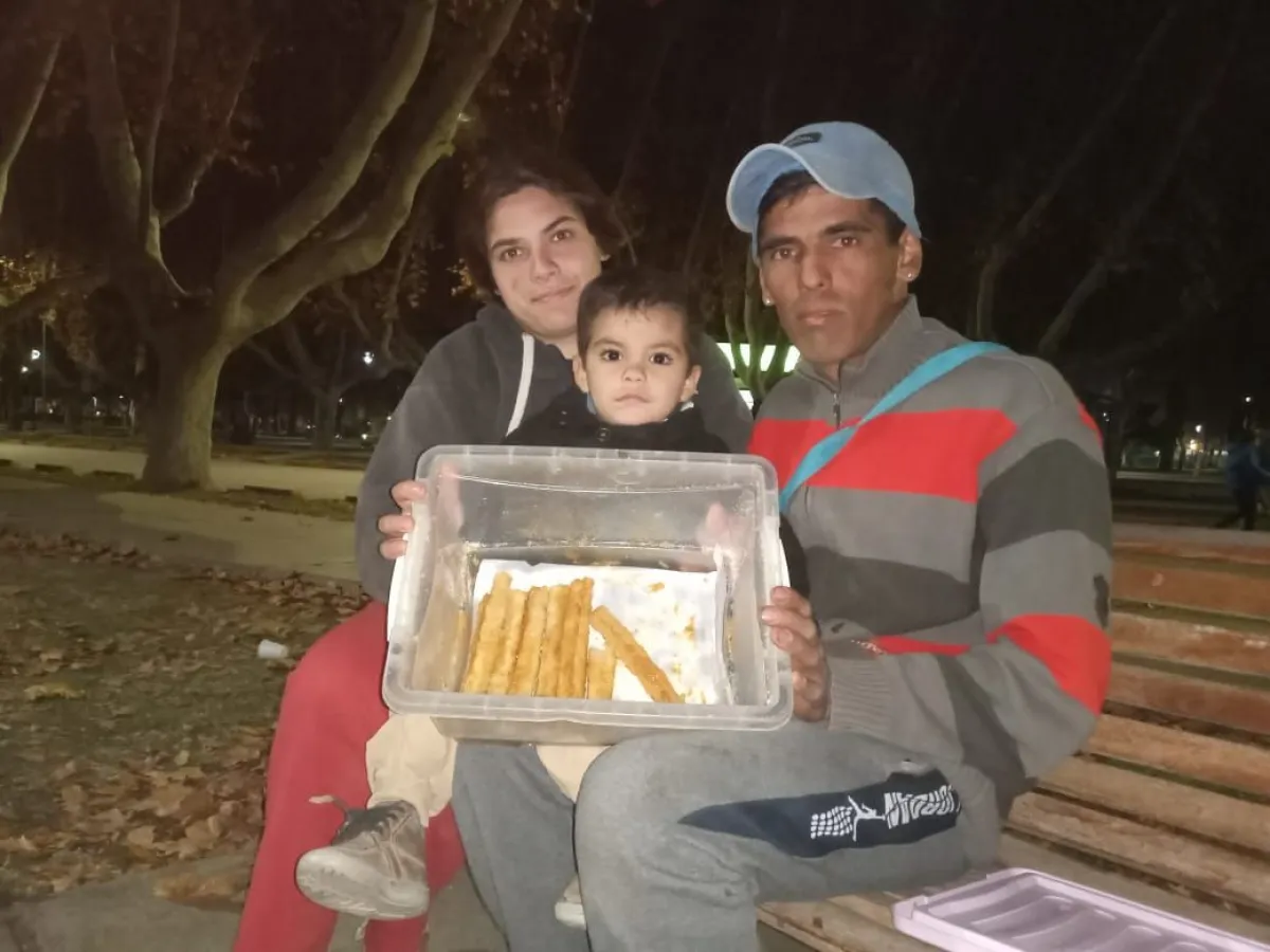 Sonríe tímidamente y dice que su emprendimiento se llama “Churros la niña”. “Nosotros somos de Concepción y hacemos el recorrido por allá (cerca de calle Mendoza y Juan Jufré). Hoy vinimos al parque para cambiar de zona y vender un poco más”, cuenta al lado de su bebé y de Carlos Robledo (31), su esposo, que los llevó en la misma bicicleta en la que cada día sale muy temprano a cumplir con su rutina de albañil.