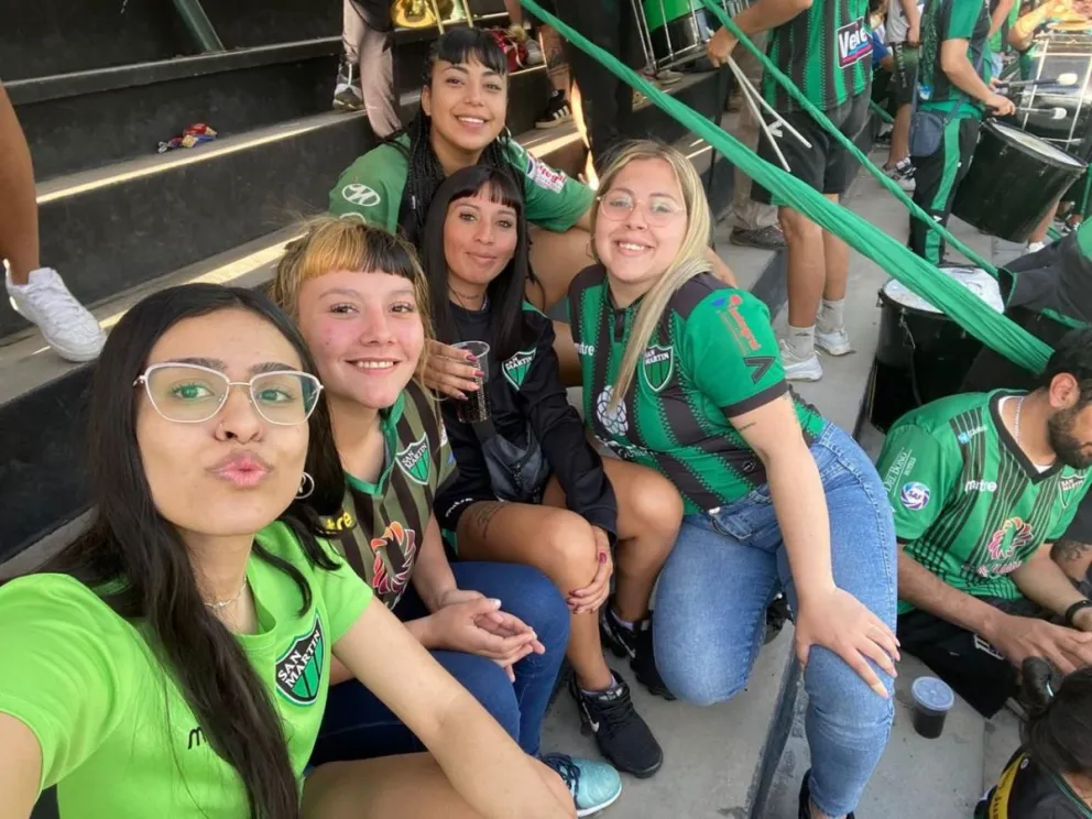El grupo fundador de “Las pibas del Verdinegro” está integrado por amigas que viven en Rivadavia, Capital y Chimbas. Soledad está acompañada también por Celeste Cortez, Josefina Aballay, Morena Salinas y Mara Knafelc. “Empezamos hace cuatro años siendo pocas. La idea era que las chicas que se sintieran solas pudieran ir a la cancha con nosotras. Con el tiempo se fueron agregando más pibas que comparten el mismo amor por San Martín y los mismos valores que nosotras”, explicaron.