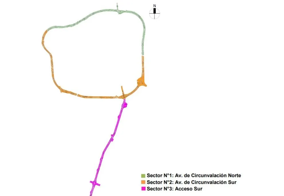 Sector N°2 “Av. de Circunvalación Sur” comprende el Tramo Sur de la RP A-014 desde Calle Paula A. de Sarmiento hasta Calle