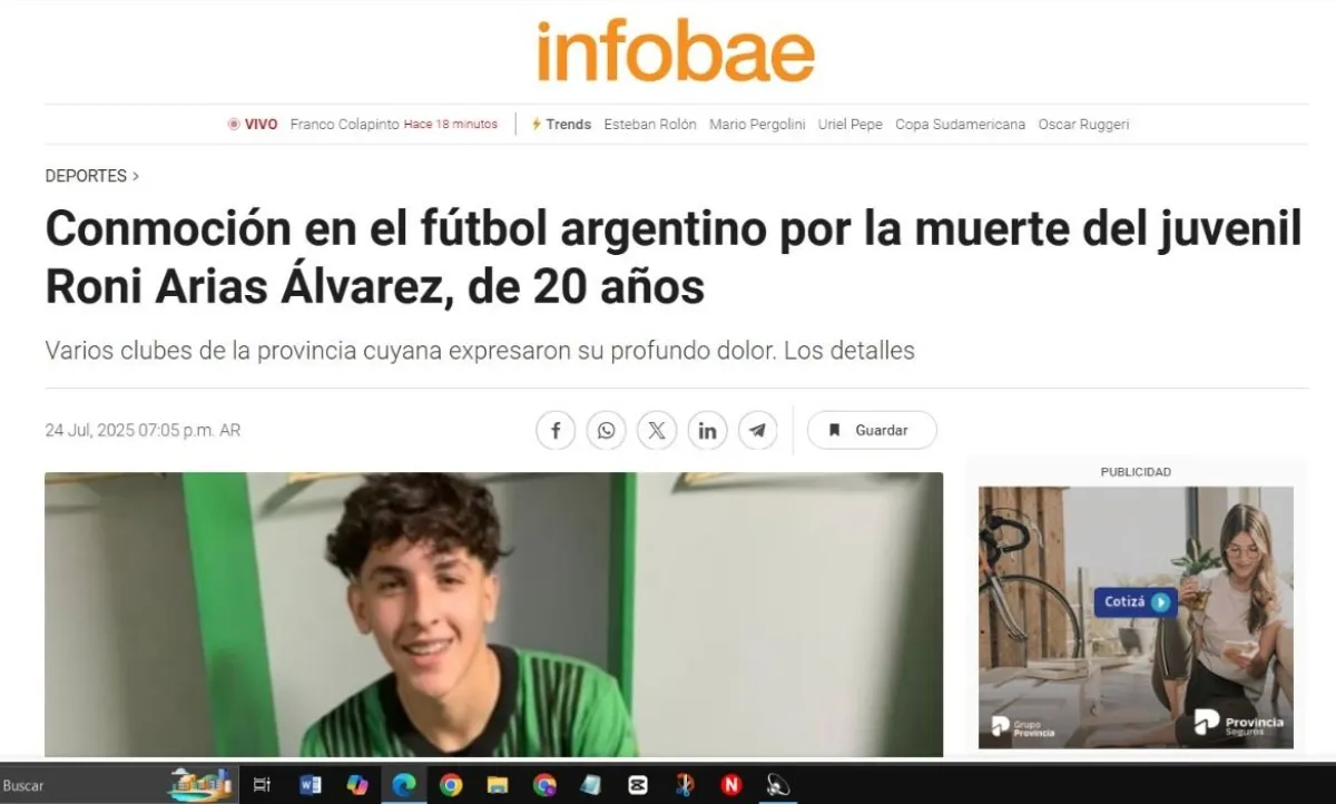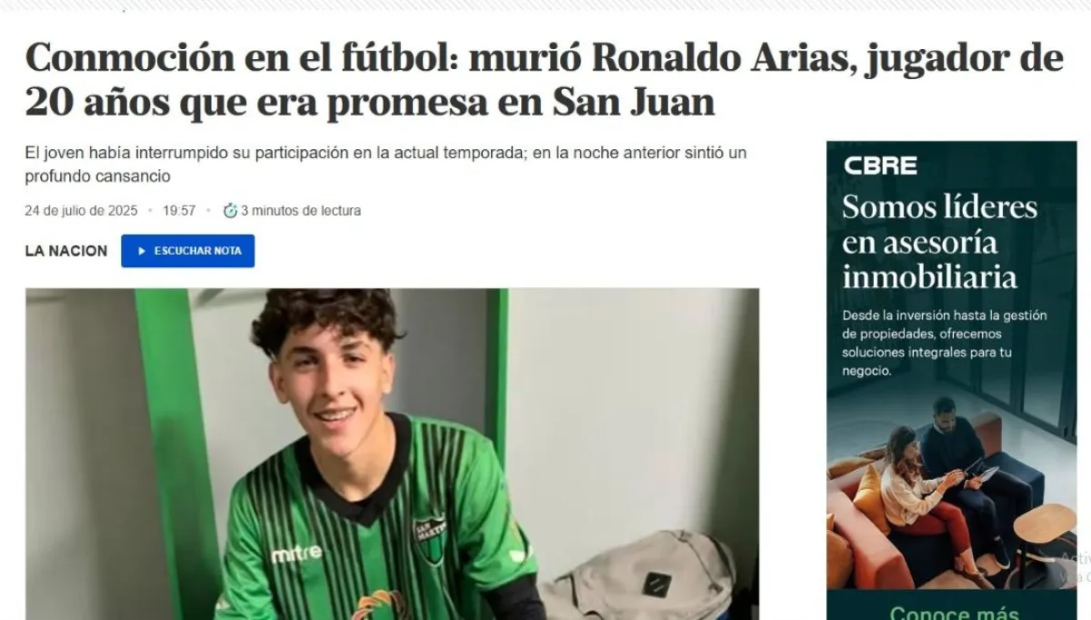 La sorpresiva muerte del juvenil de Peñarol, Ronaldo Arias, llegó a los medios nacionales. Infobae, TN, Clarín y La Nación, solo por nombrar algunos, replicaron la noticia de la muerte del jugador de fútbol.