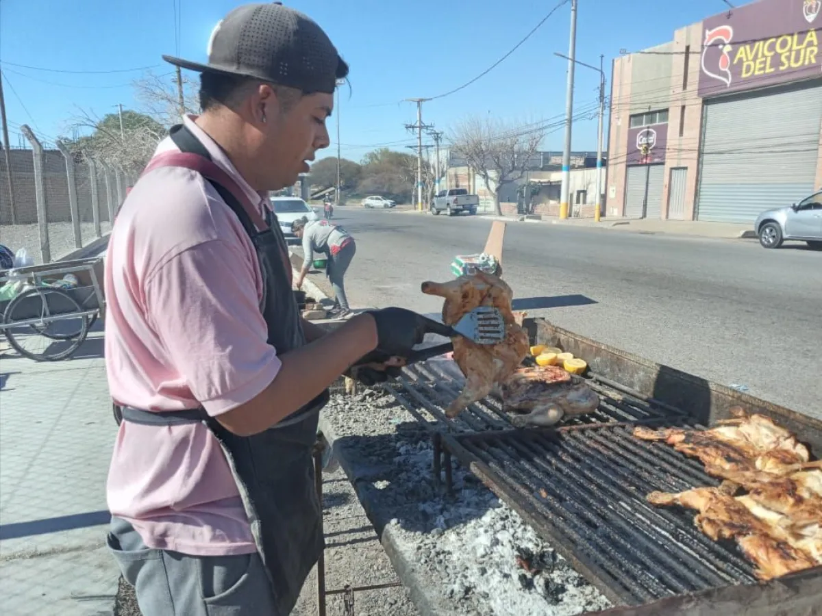 El joven de 20 años trabaja para ese puesto desde hace tres meses, porque antes se desempeñaba en uno de Cabot y San Miguel. Asegura que generalmente venden todo. Pero desde hace algunas semanas hay días en los que notan la baja en las ventas. “El viernes vendimos cuatro pollos nomás”, dice.