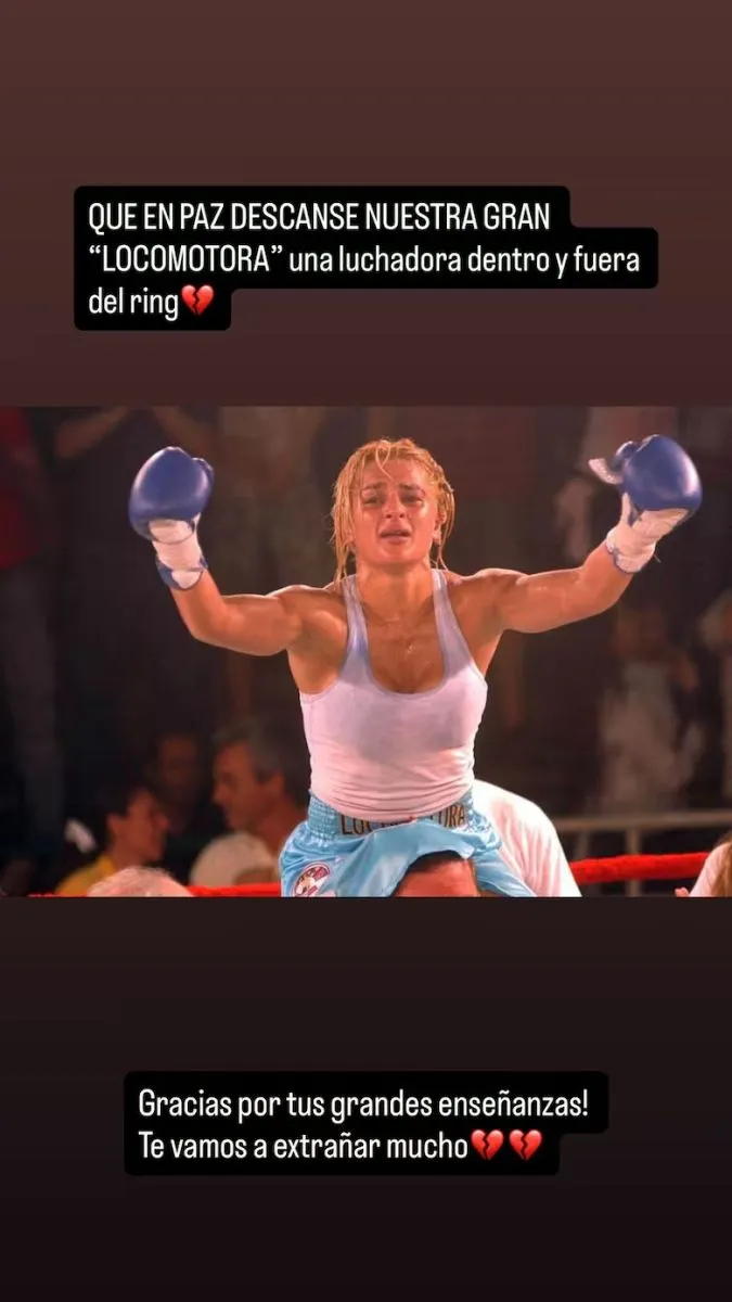 “Que en paz descanse nuestra gran Locomotora. Una luchadora dentro y fuera del ring. ¡Gracias por tus grandes enseñanzas! Te vamos a extrañar mucho“, expresó María Becerra, que hace su debut actoral en la serie, además de darle voz al tema principal de la banda sonora.