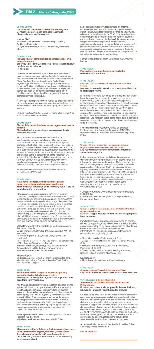 Conocé la agenda completa de Argentina Cobre, que reunirá a los máximos referente mundiales en San Juan