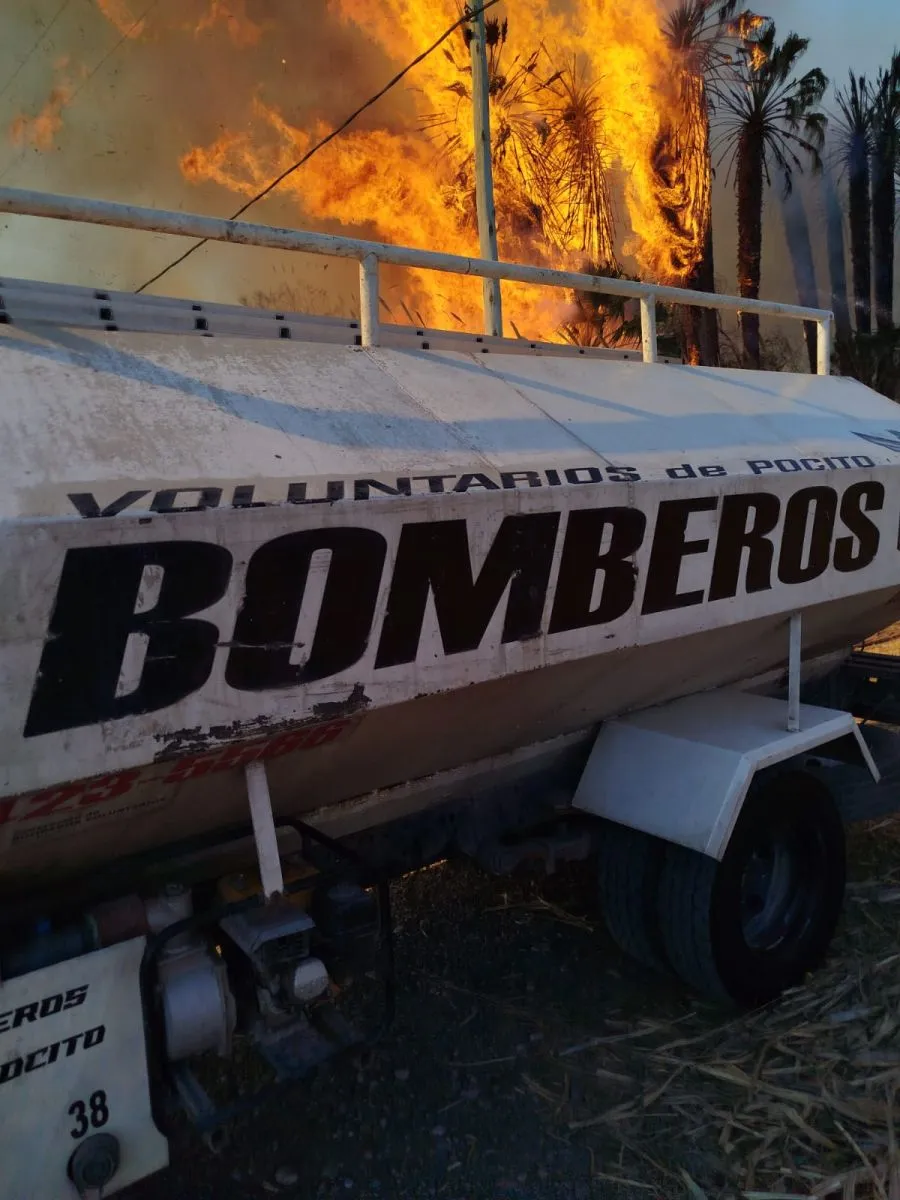 De acuerdo a Bomberos Voluntarios de Pocito, el siniestro consumió alrededor de 15 palmeras y una pieza utilizada como depósito, que afortunadamente no contenía materiales en el momento del incendio. La intervención de los bomberos fue crucial para controlar las llamas a tiempo y evitar que se propagaran a dos viviendas y un galpón que se encontraban en serio riesgo.