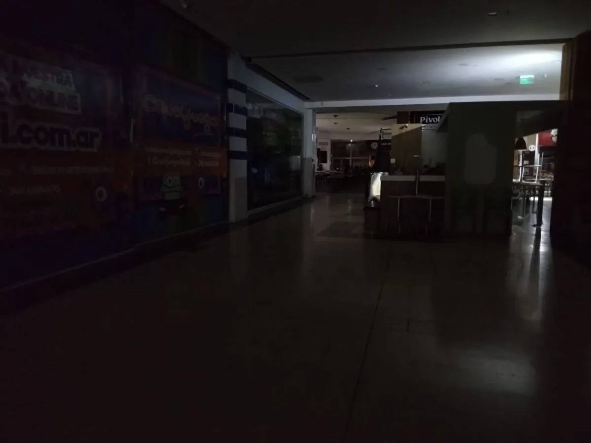 El Hiper Libertad se quedó sin luz en las últimas horas por el temporal de viento Zonda. El paseo comercial estuvo a oscuras y la gente que se encontraba en el lugar comenzó a salir ante la situación.