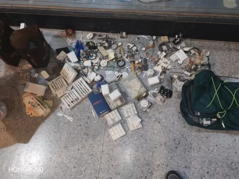 Ya adentro, arrasaron con todo a su paso. En dos mochilas guardaron todo lo que encontraron: unos 123 relojes de gran valor, e innumerables cadenas, aros, anillos y dijes, de oro y plata.