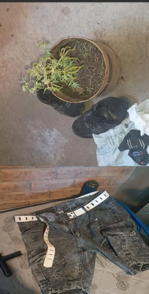 Durante el allanamiento realizado en el domicilio del menor, la policía secuestró un arma de fabricación casera, vainas servidas, un caño y un pantalón corto de jean que coincidía con la descripción del ladrón. Además, se halló una planta de cannabis sativa, por lo que intervino personal de Drogas Ilegales.