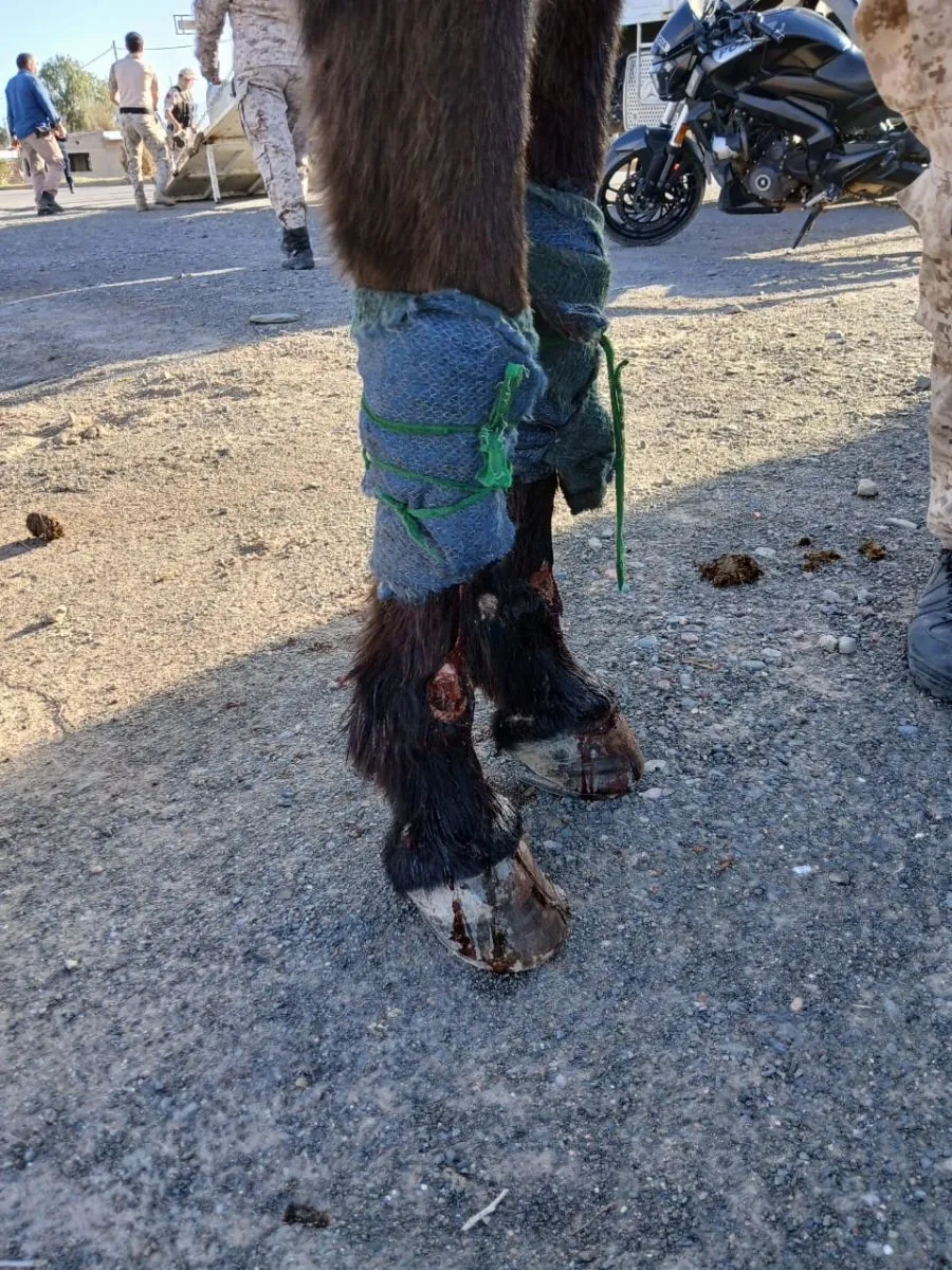 Allí encontraron dos mulares (mulas) -uno zaino y otro moro-, los cuales presentaban heridas en diferentes partes del cuerpo, incluyendo, el lomo, patas traseras y delanteras, pecho y ancas. Deambulaban por la ruta.