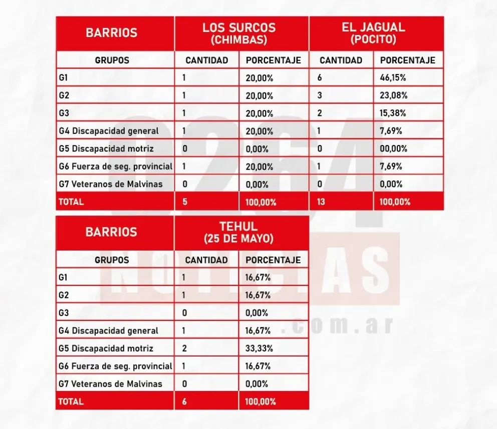 Según la resolución oficial, el cambio se dio luego de “transcurrido el período para la recepción de reclamos, ajustes y/o correcciones de los padrones, y finalizado con los cambios correspondientes”. Así, “se advierten modificaciones respecto de la cantidad de viviendas y su distribución en los distintos grupos, en virtud de haberse declarado nulas determinadas inscripciones en cada uno de ellos”. En ese marco, cuando originalmente para el barrio Solares del Sur se asignaron 12 viviendas para el Grupo 4 – Discapacidad General, ahora la cantidad se incrementó a 16. Esto es, que para ese sector las chances de recibir una vivienda se incrementaron en un 33%. ¿El motivo? Hubo una baja en la cantidad de casas disponibles para el Grupo 5 – Discapacidad Motriz, dado que pasó de 7 viviendas a 3. En el caso del complejo El Puerto, en Calingasta, los cambios también se dieron en Discapacidad General sumado a los denominados Grupo 1, con mayor antigüedad, y Grupo 2, con antigüedad intermedia de inscripción en el IPV. Así, se aplicó un mejor reparto para quienes recién se anotaron para recibir una casa del Estado, discapacidad general y Fuerzas de Seguridad. A los primeros se les asignó 3 casas a sortear, cuando antes tenían 1; mientras que para los segundos y terceros pasó de 1 vivienda a 2.