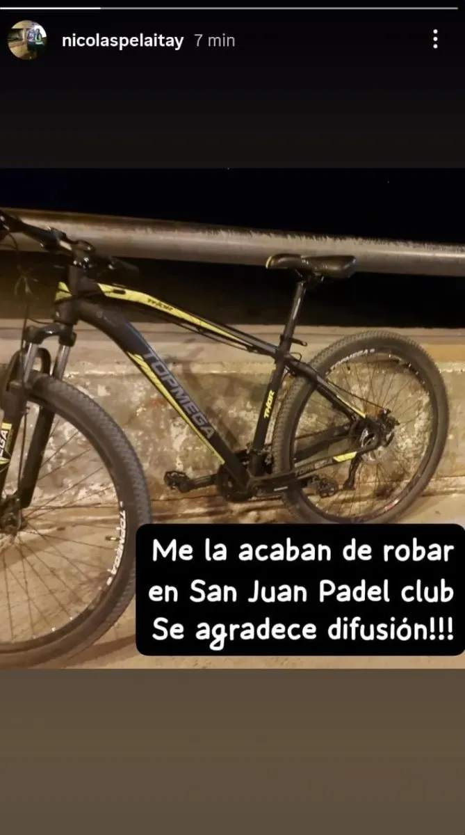 El jugador de fútbol de San Martin, Nicolás Pelaitay, denunció a través de sus redes sociales que sufrió el robo de su bicicleta en un club de pádel de la provincia.