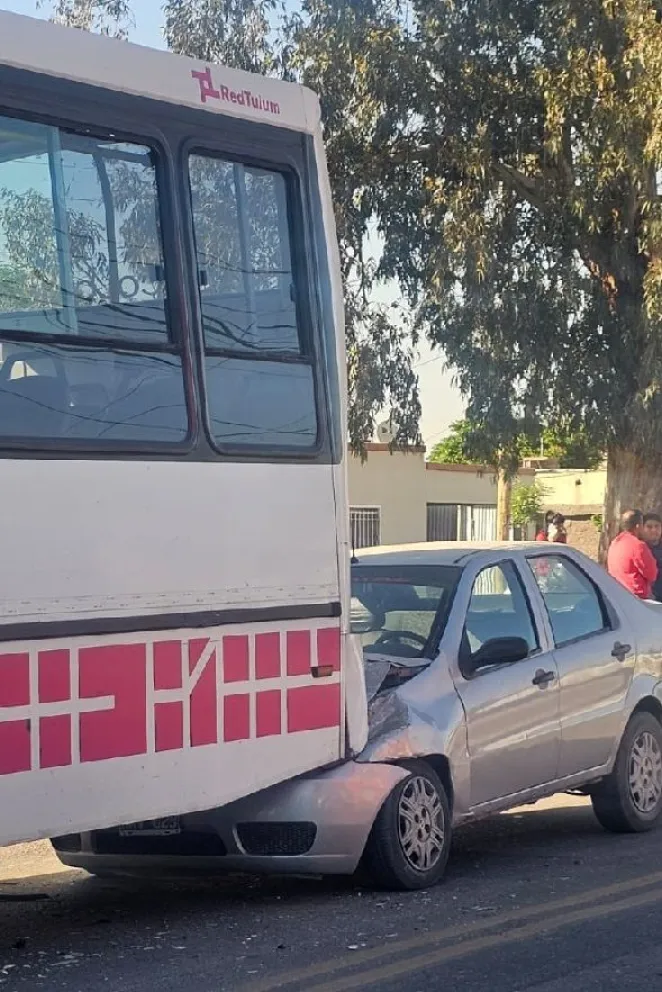 La mañana de este jueves se vio alterada en Pocito por un fuerte siniestro vial. El hecho ocurrió en la intersección de calle Lemos y Pedro Echagüe, ahí un auto terminó incrustado en la parte trasera de un colectivo de la línea 244 de la Empresa Mayo.
