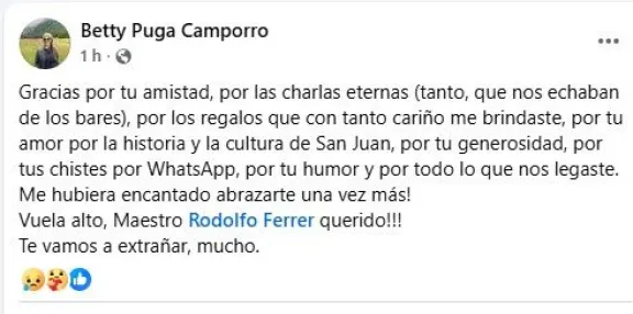 La confirmación llegó desde la institución que marcó gran parte de su carrera: “El Equipo de Conducción del Centro Polivalente de Arte informa con muchísima tristeza el fallecimiento de nuestro querido exdirector, Rodolfo Ferrer. Una persona que entregó su vida a esta institución y siempre estuvo presente”, expresaron en un comunicado.