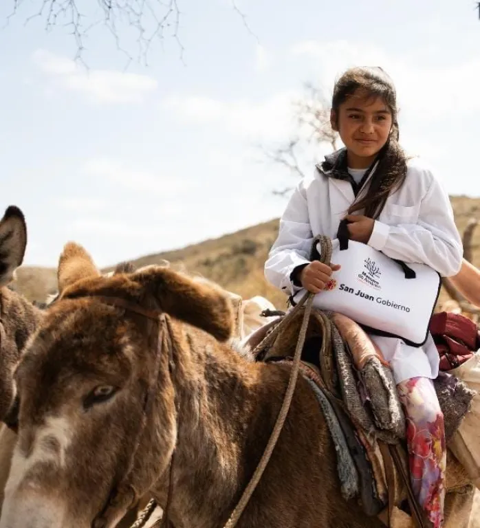 La entrega se realizó  este martes y Giselle, que asiste a la Escuela Albergue de Magallanes, fue una de las beneficiadas. Así quedó registrado en una foto: arriba de su burro, con un guardapolvo blanco impecable, y su computadora, la primera de su vida, bajo el brazo.