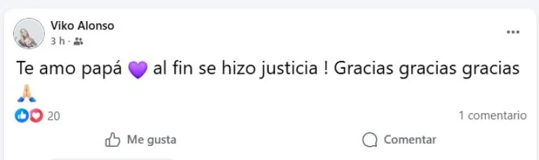De esta manera, la joven escribió en un post: “Te amo papá al fin se hizo justicia ! Gracias gracias gracias”.