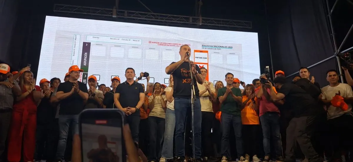 Palma habló de que habrá "una marea naranja" e hizo un llamado a la militancia del frente. "Los únicos intereses que vamos a defender en el Congreso de la Nación son los intereses de los sanjuaninos y por eso la gente nos prestará la confianza. Les quiero pedir que el día domingo cada uno, desde su lugar, esté cuidando las boletas... Tenemos que hacer el último esfuerzo porque vamos a ver el triunfo en cada una de las urnas".