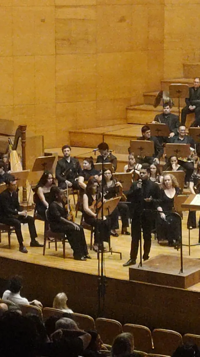 La Orquesta Sinfónica de la Universidad Nacional de San Juan (UNSJ) dio a conocer el reclamo salarial del sector docente y no docente de la institución en el cierre del Mozarteum, que tuvo como protagonista a la reconocida artista Paula Policano. Uno de los músicos tomó la palabra y explicó el escenario que viven en este momento, poniendo en valor el compromiso de los profesionales por su labor, debido a que ellos decidieron continuar trabajando para garantizar el espectáculo.