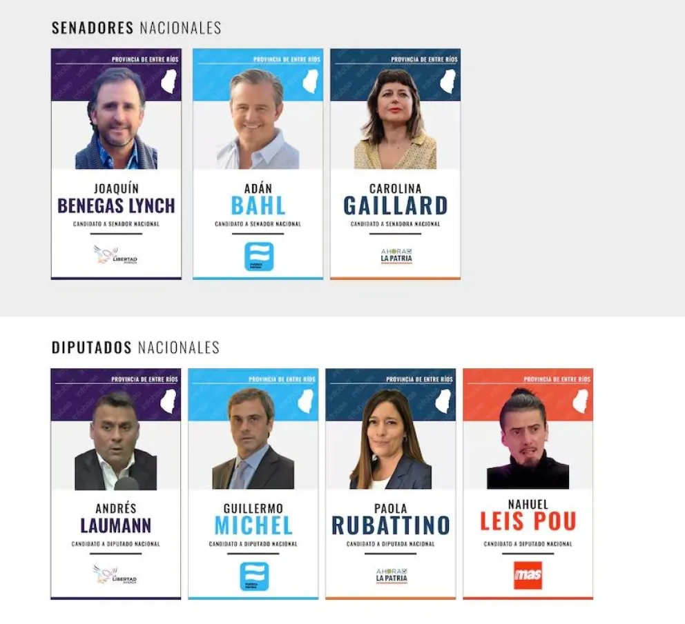 • Candidatos al Senado (Bancas salientes: Stefanía Cora, Alfredo De Angeli y Stella Maris Olalla):